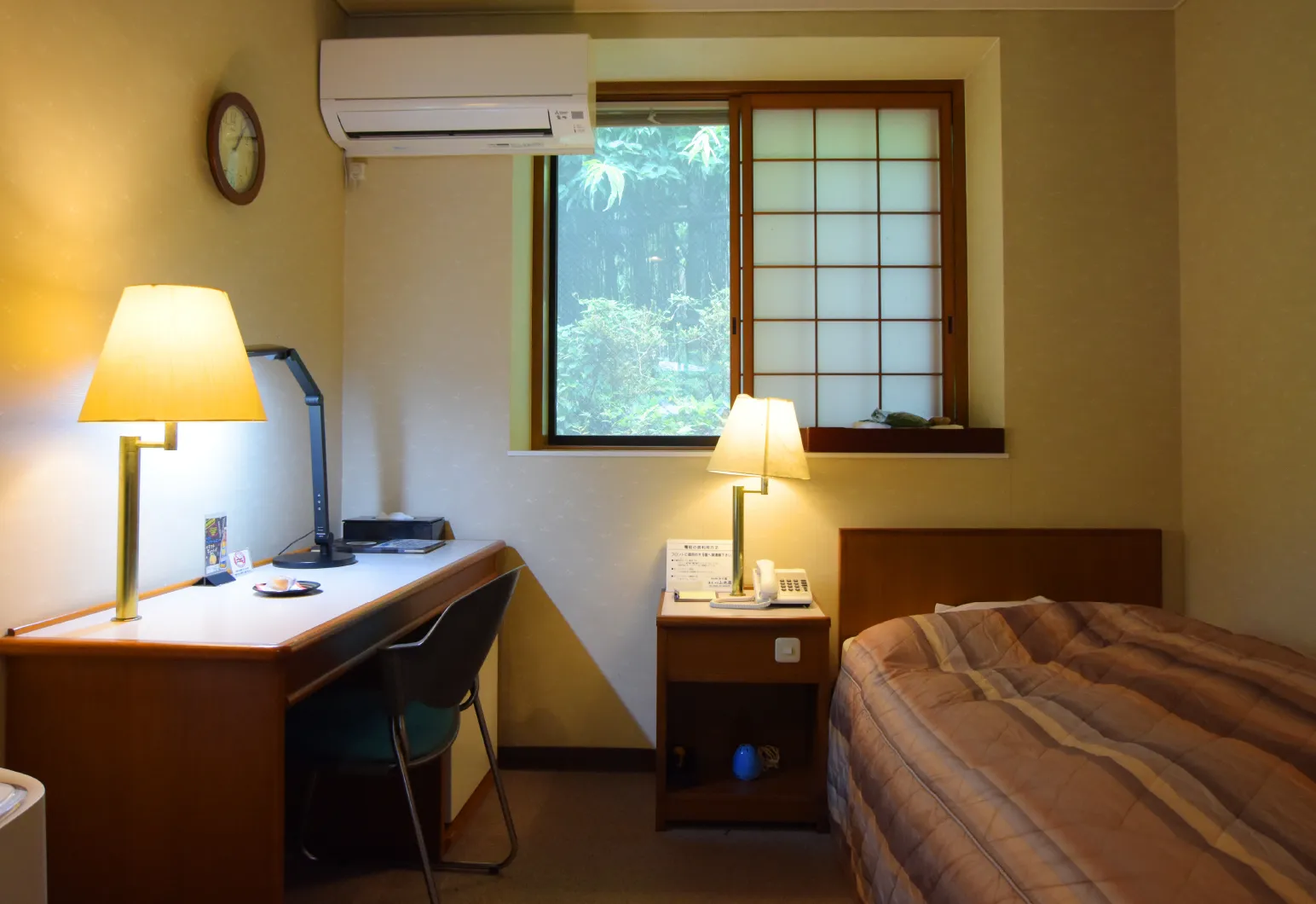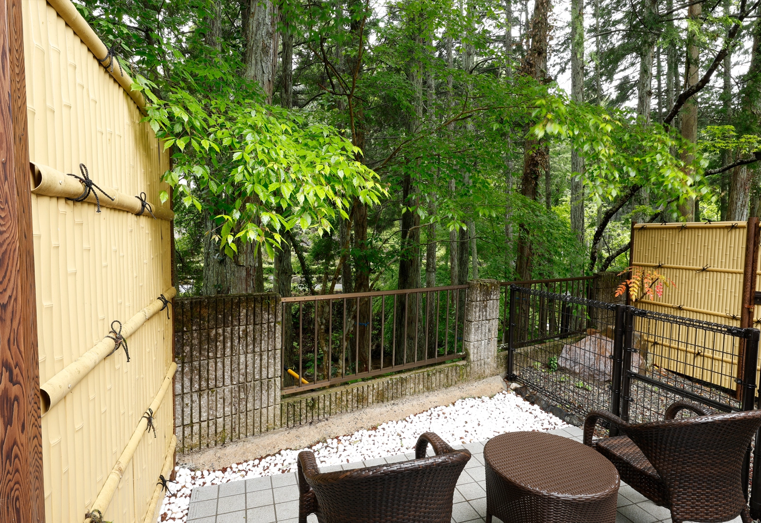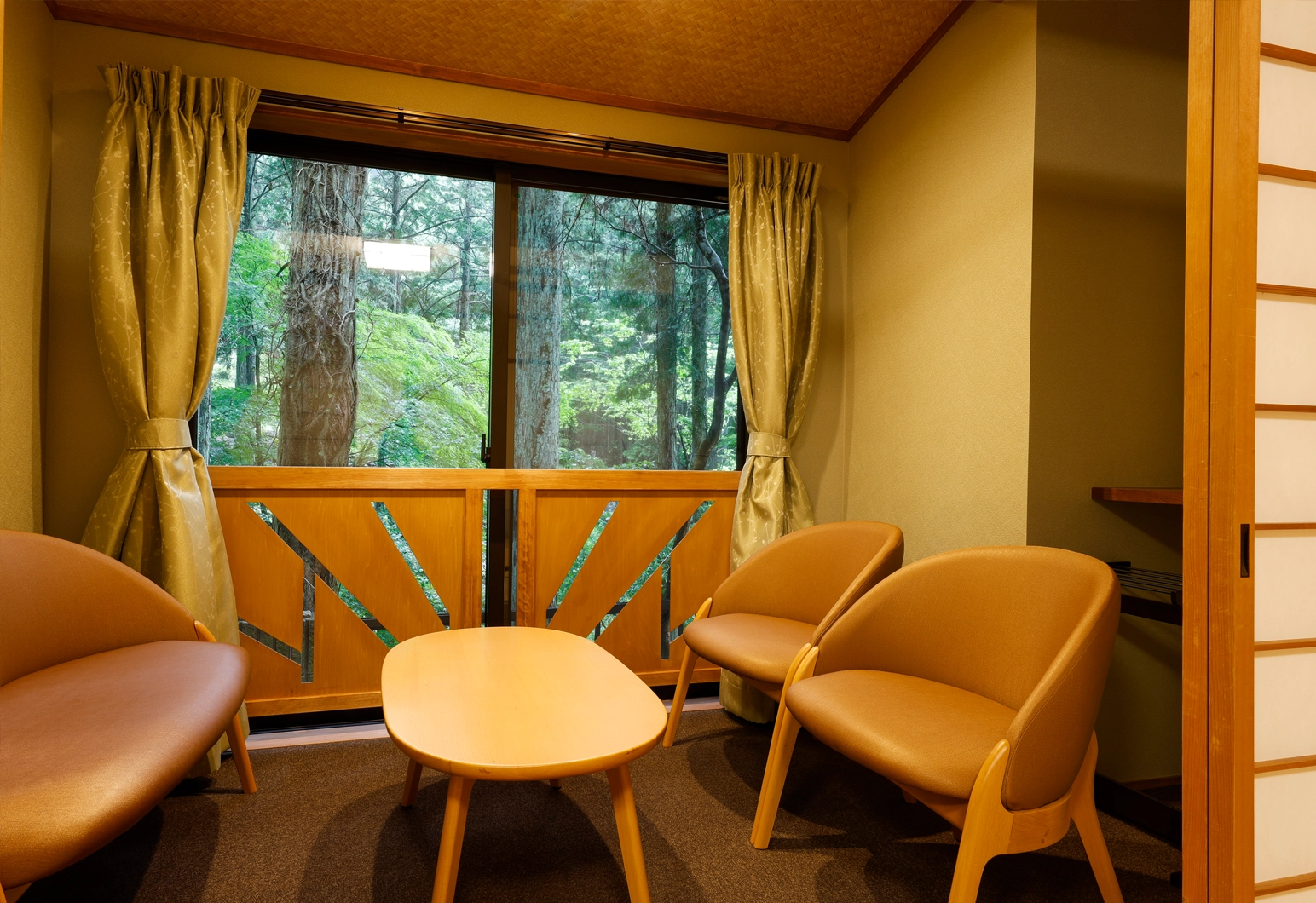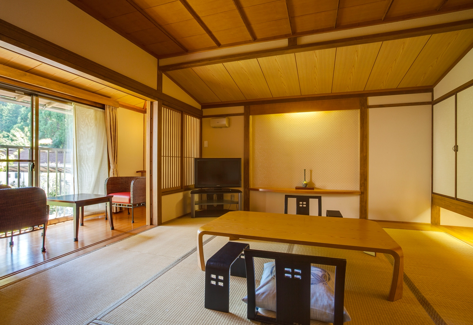 「ベッドルームのある広々とした洋室と、6帖の和室のついた空間です。ご家族・グループでの宿泊におすすめ、別荘タイプの離れです。 (3名様~4名様でのご宿泊の場合はベット2台とお布団となります)